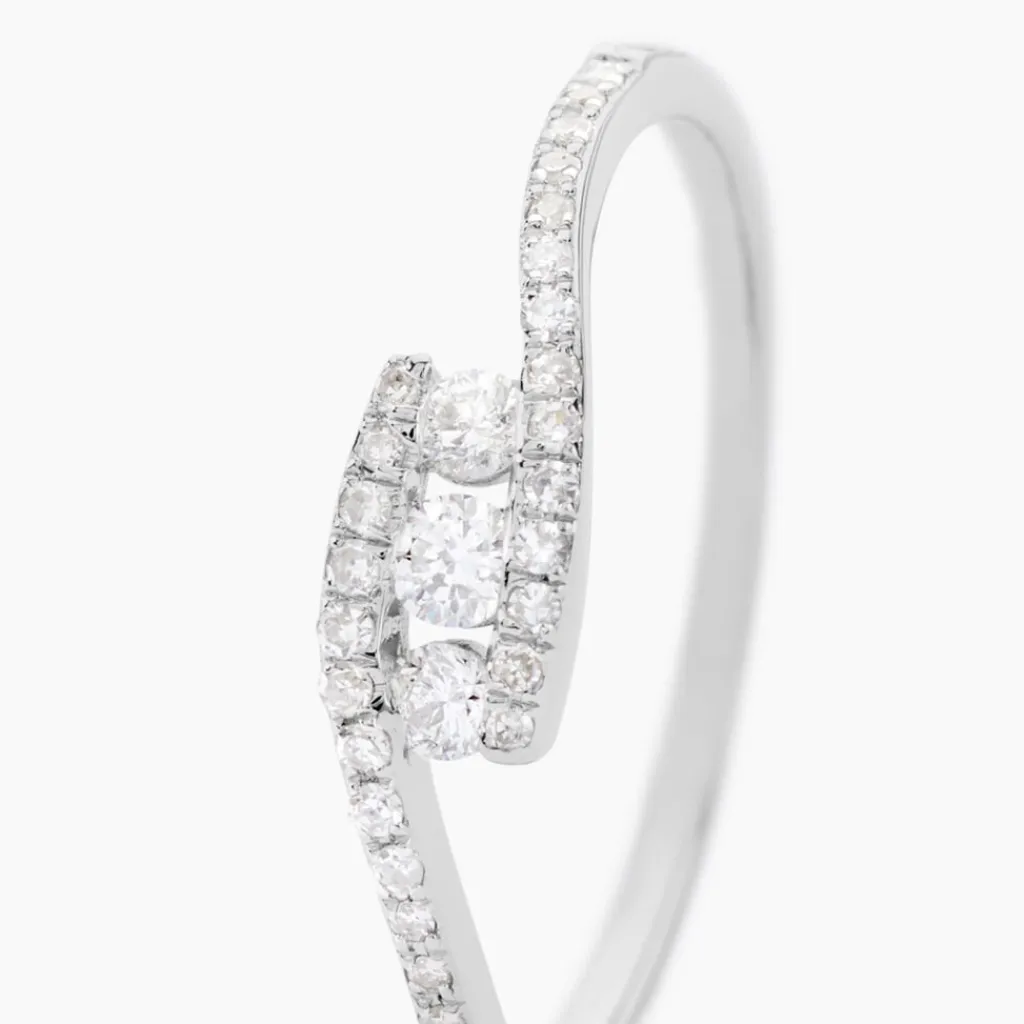 Bague Or Blanc 375/1000 Pm Trilogie Diamants 0.15cts Pm