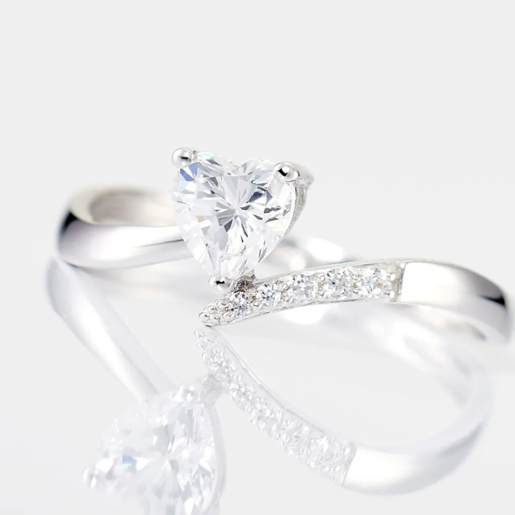Bague Or Blanc 375/1000 Oxyde De Zirconium Forme C艙ur Et Oxydes De Zirconium