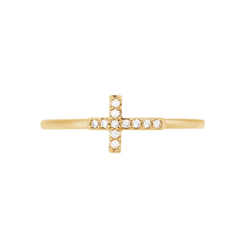 Bague Plaque Or Jaune Croix Oxydes De Zirconium