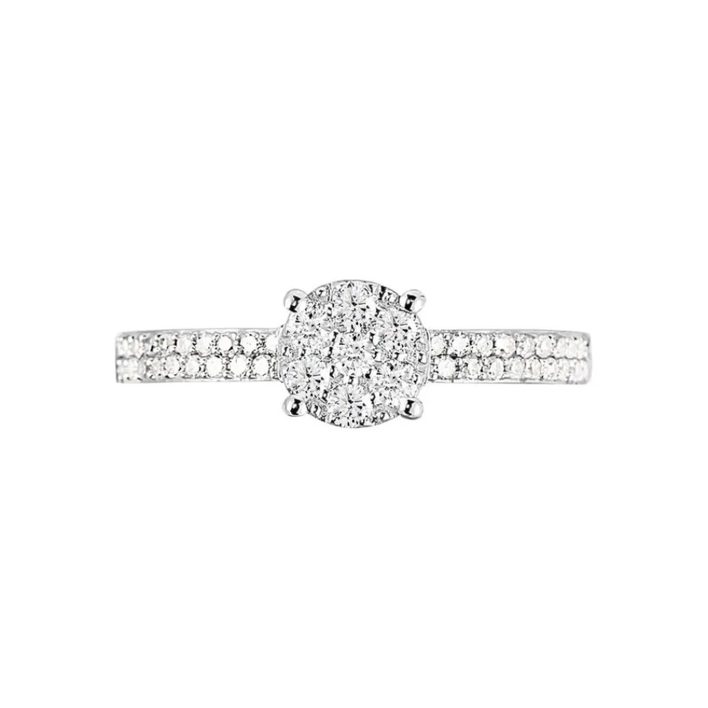 Bague Or Blanc 375/1000 Multi Pierres Diamants 0.324cts Corps De Bague Accompagné Camille