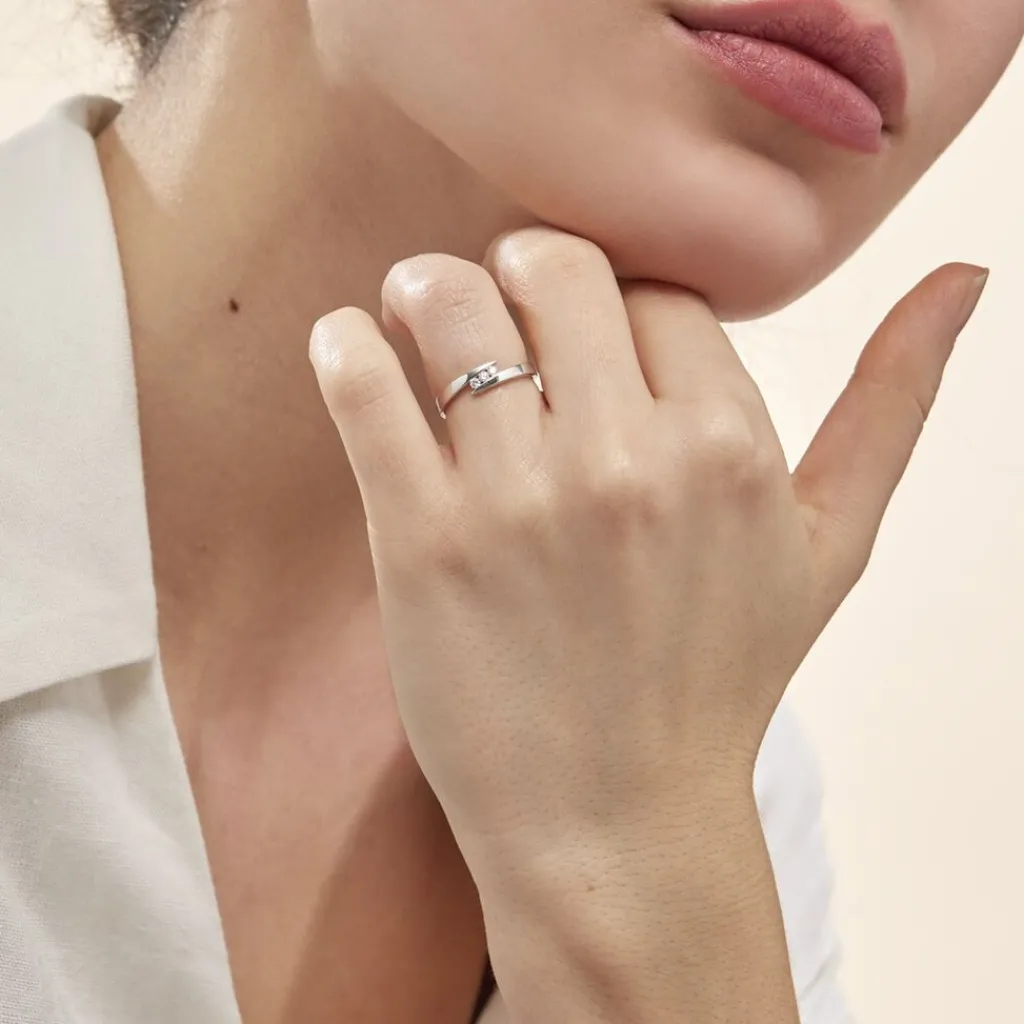 Bague Or Blanc 375/1000 Trilogie Diamants 0.07cts