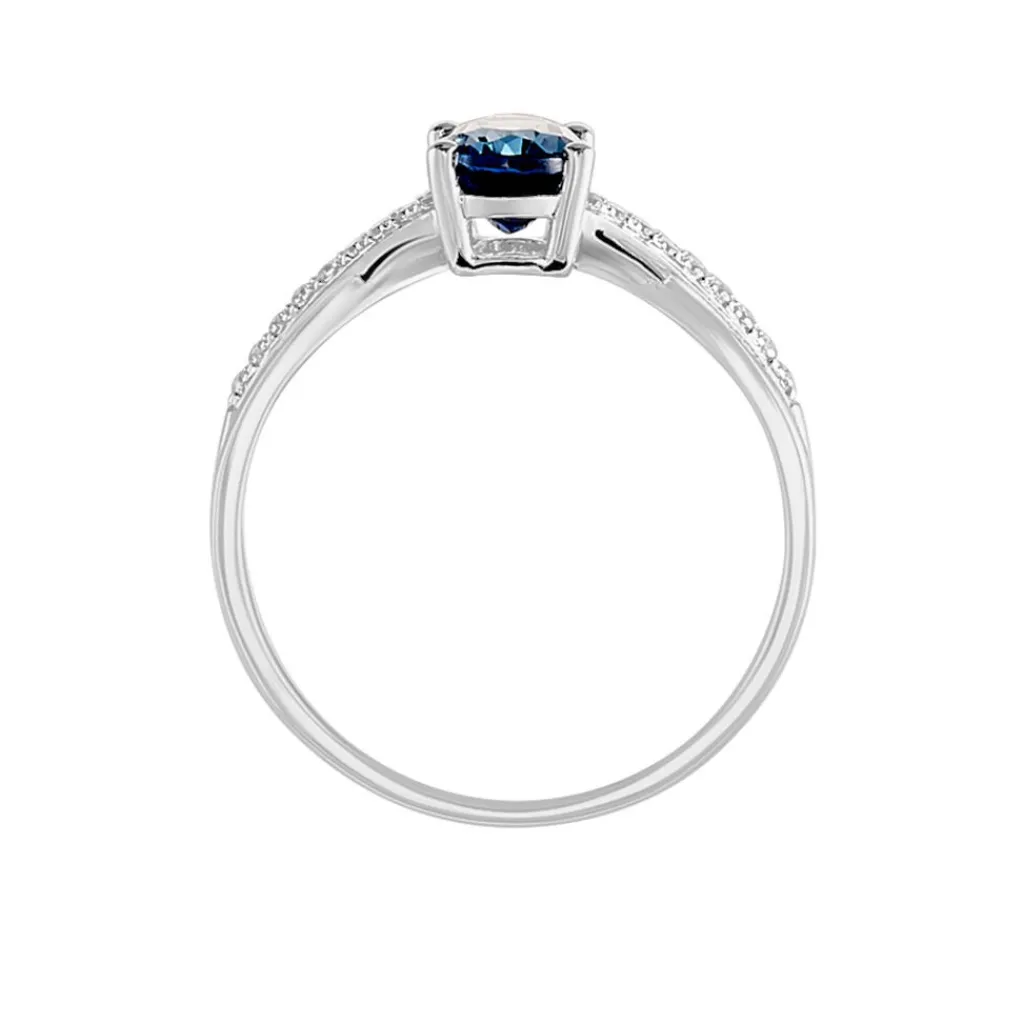 Bague Or Blanc 375/1000 Topaze London Blue Accompagnee Oxydes De Zirconium
