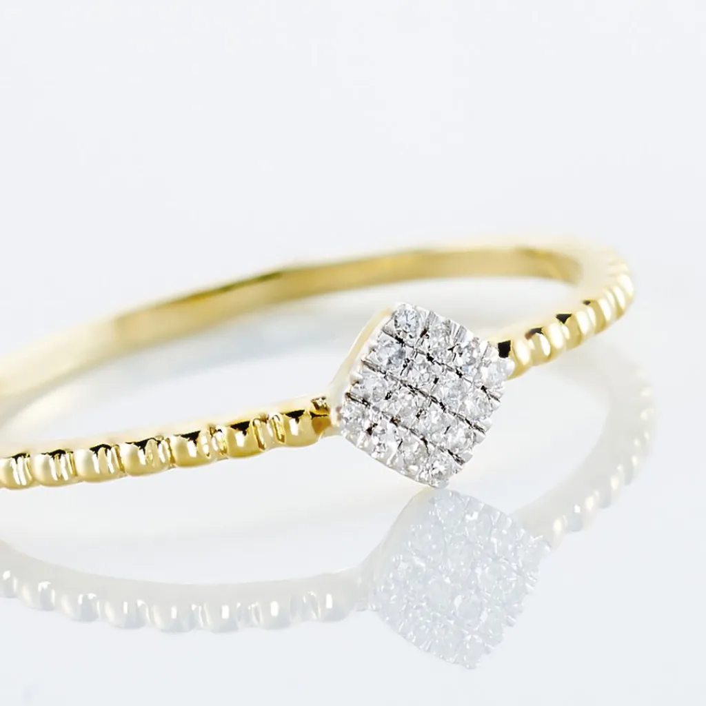 Bague Or Jaune 375/1000 Losange Pavage Diamants Effet Perle