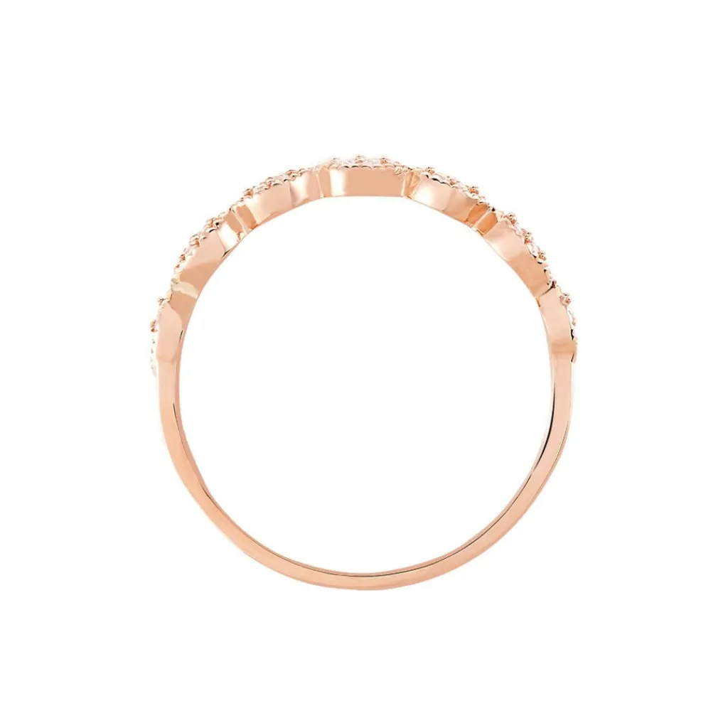 Bague Or Rose 375/1000 Motifs Multi Gouttes Effet Perle Oxydes De Zirconium
