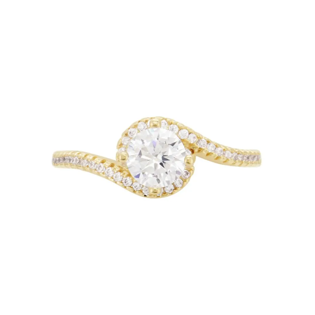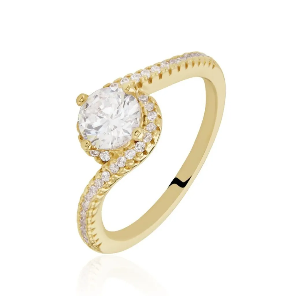 Bague Plaque Or Jaune Vrille Oxydes De Zirconium