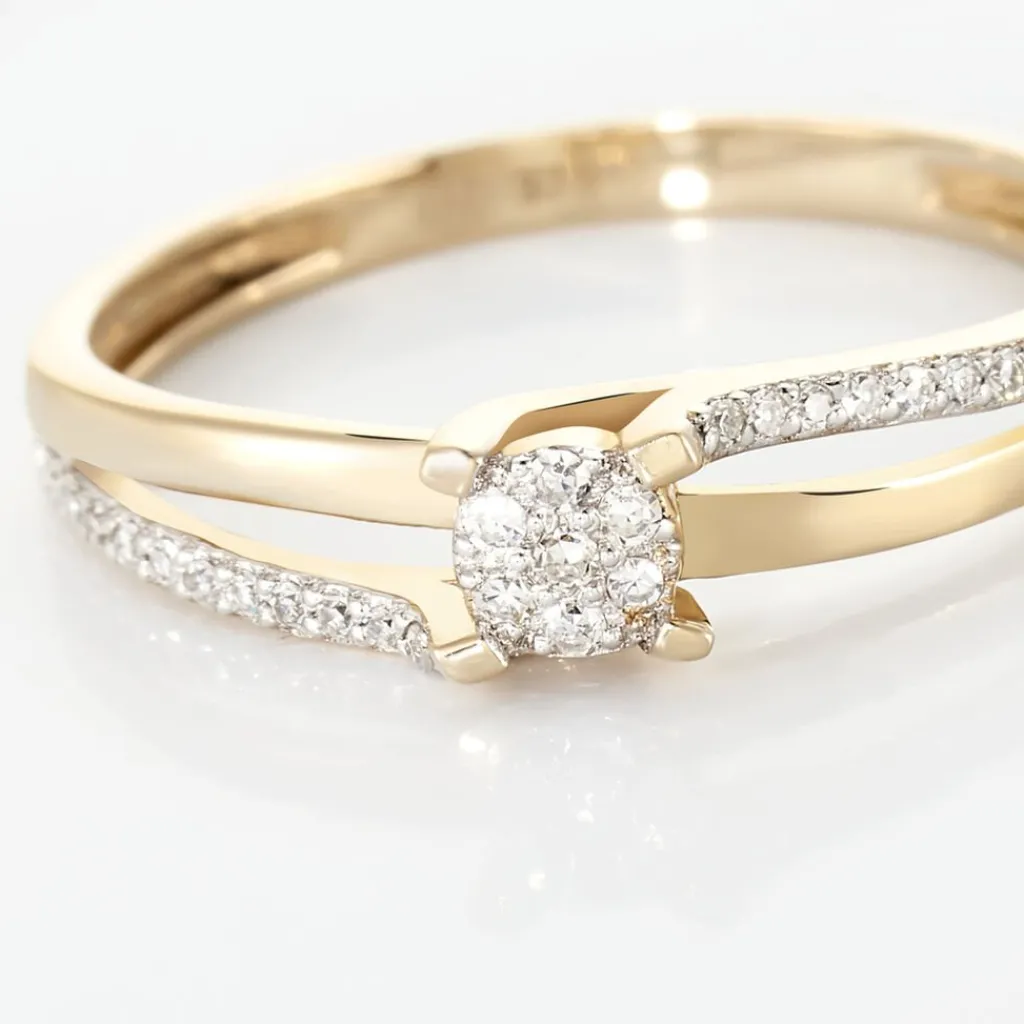 Bague Or Jaune 375/1000 Multipierres Diamants Avec Corps De Bague Ajoure Semi Pavage Diamants