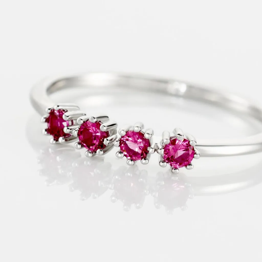 Bague Argent 925/1000 4 Oxydes De Zirconium Rouges Serti Griffes Effet Perlé