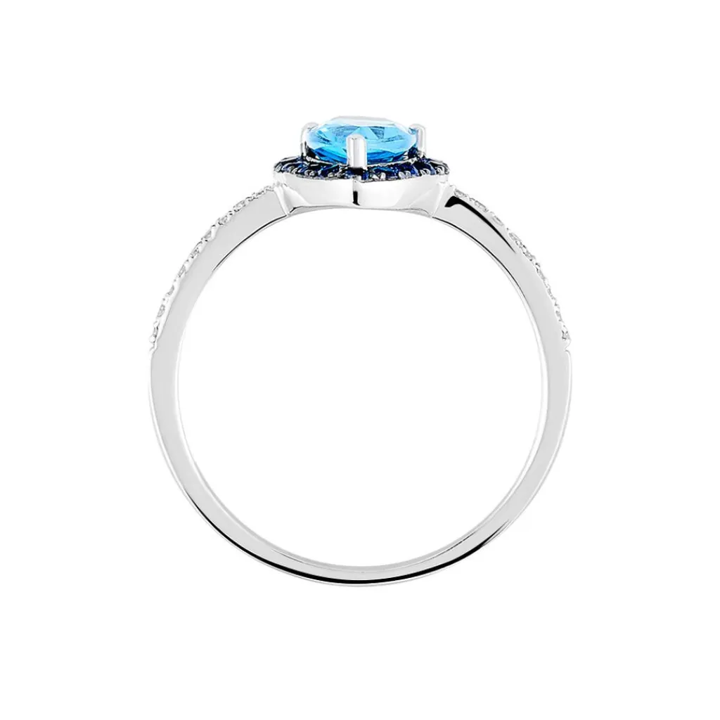 Bague Or Blanc 375/1000 Topaze Forme Poire Entourage Saphirs Et Pavage Diamants