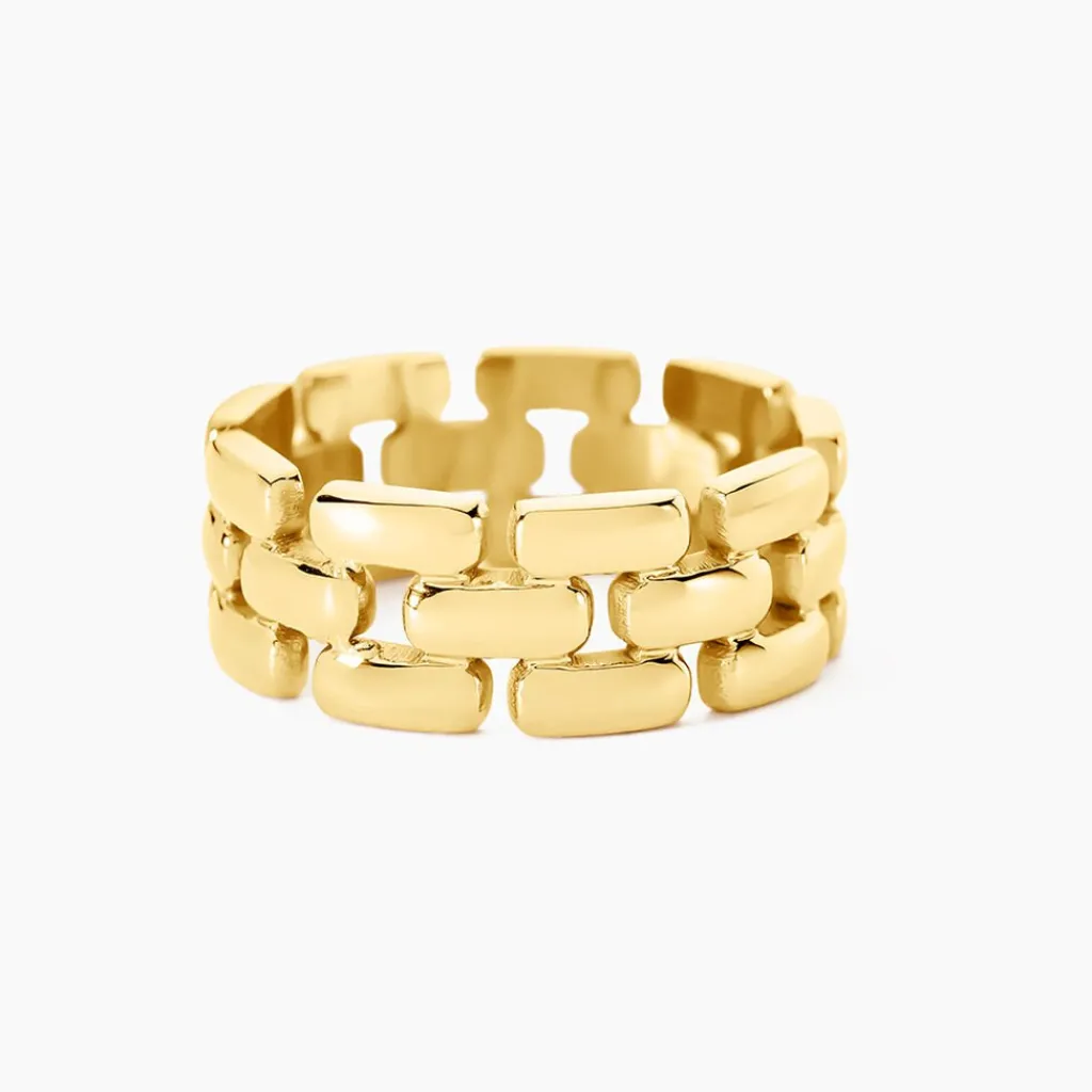 Bague Acier Inoxydable Jaune Effet Maille Panthère