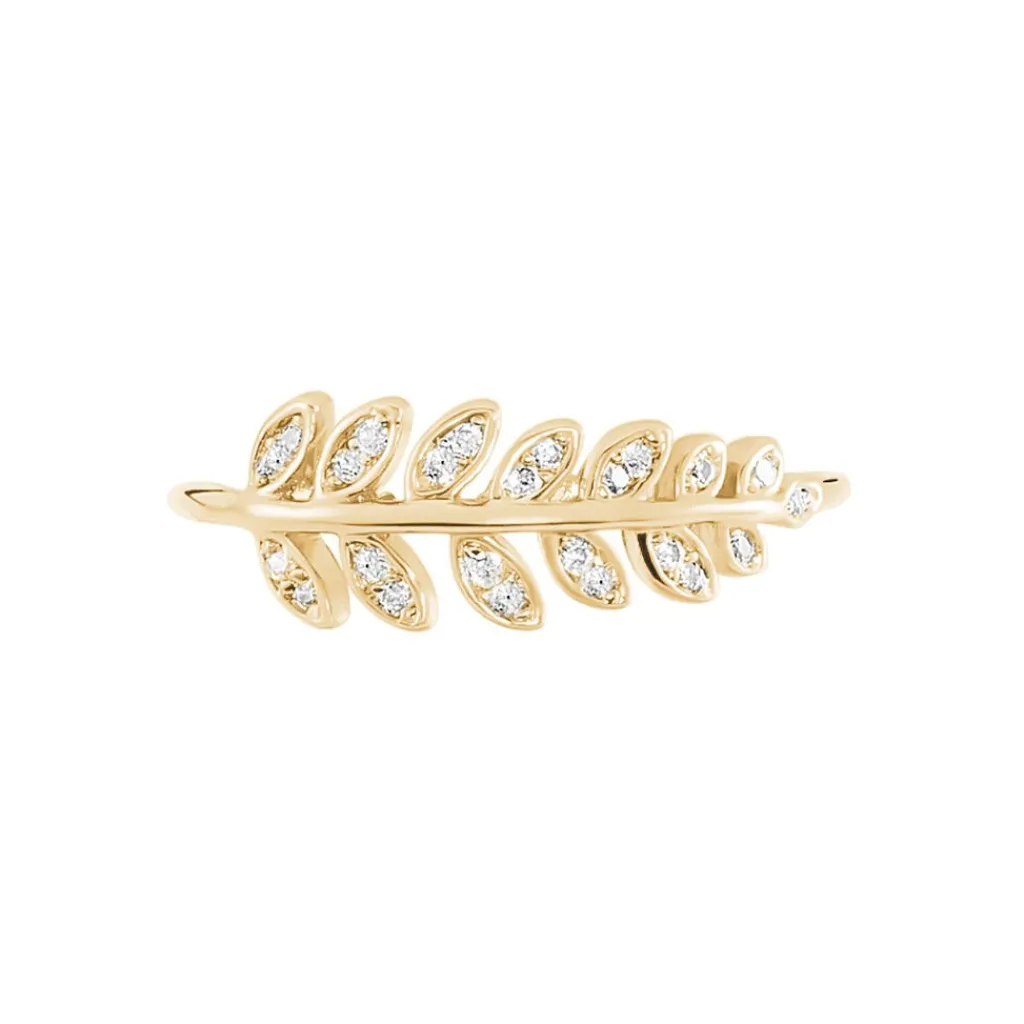 Bague Plaque Or Jaune Forme Feuille Pavage Oxydes De Zirconium