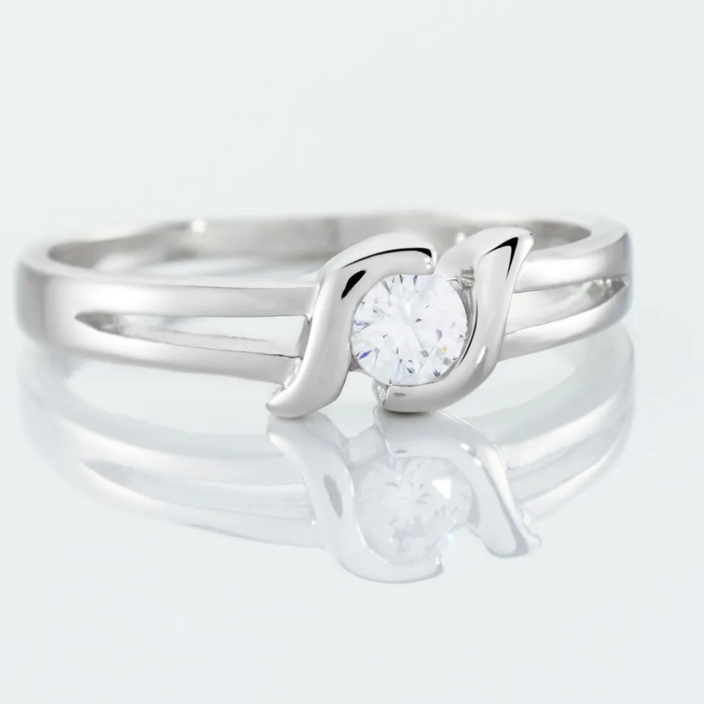 Bague Argent Blanc 925/1000 Double Corps De Bague Ajoure Oxyde De Zirconium Rond Serti Vrille