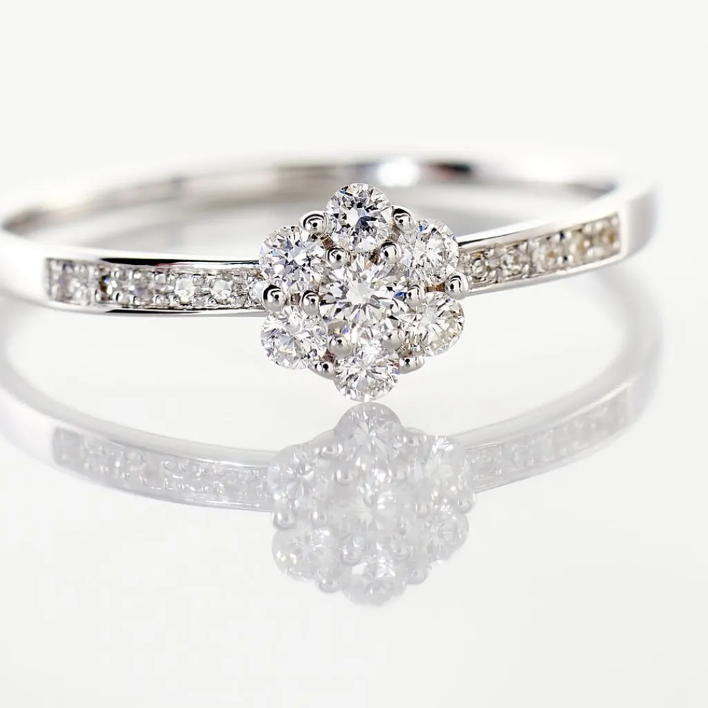 Bague Or Blanc 375/1000 Magnolia Pavage Diamants 0.298cts