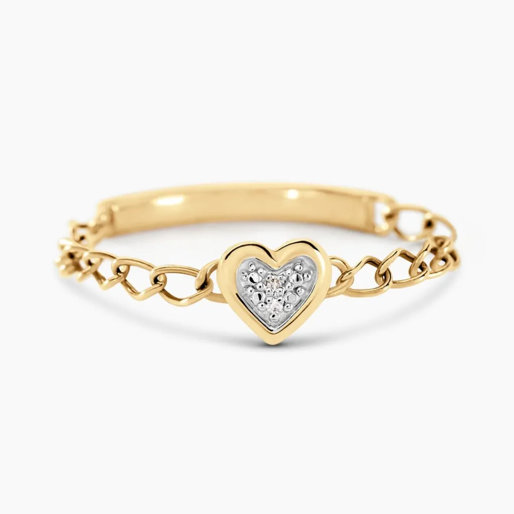 Bague Chaine Or Jaune 375/1000 Coeur Diamants 0.004cts Illusion Maille Gourmette
