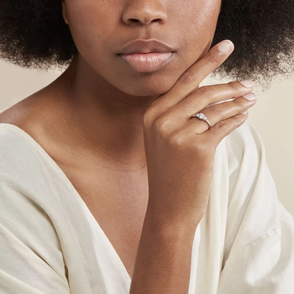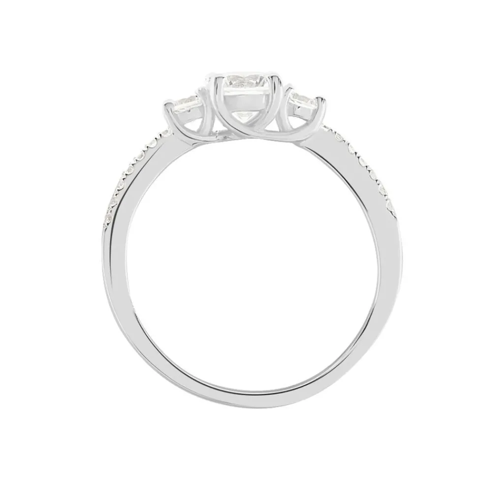 Bague Argent Blanc 925/1000 Trilogie Oxydes Accompagnee Oxydes De Zirconium