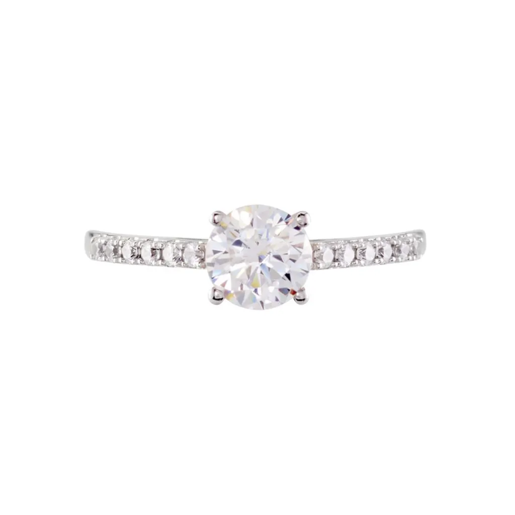 Bague Or Blanc 375/1000 Oxyde De Zirconium Central Accompagne D’oxydes De Zirconium