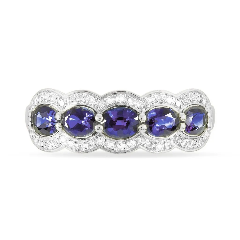 Bague Or Blanc 750/1000 Tanzanites Violettes Et Diamants