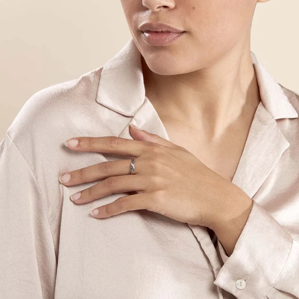 Bague Or Blanc 375/1000 Noeud Pave Diamants Blancs Diamants Noirs