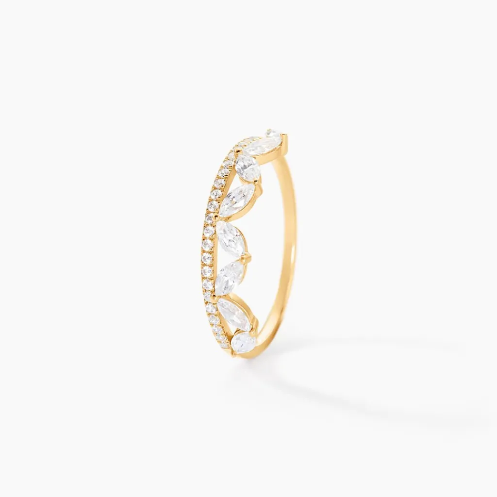 Bague Or Jaune 375/1000 Oxyde De Zirconium Navettes Et Rondes Serti Griffes