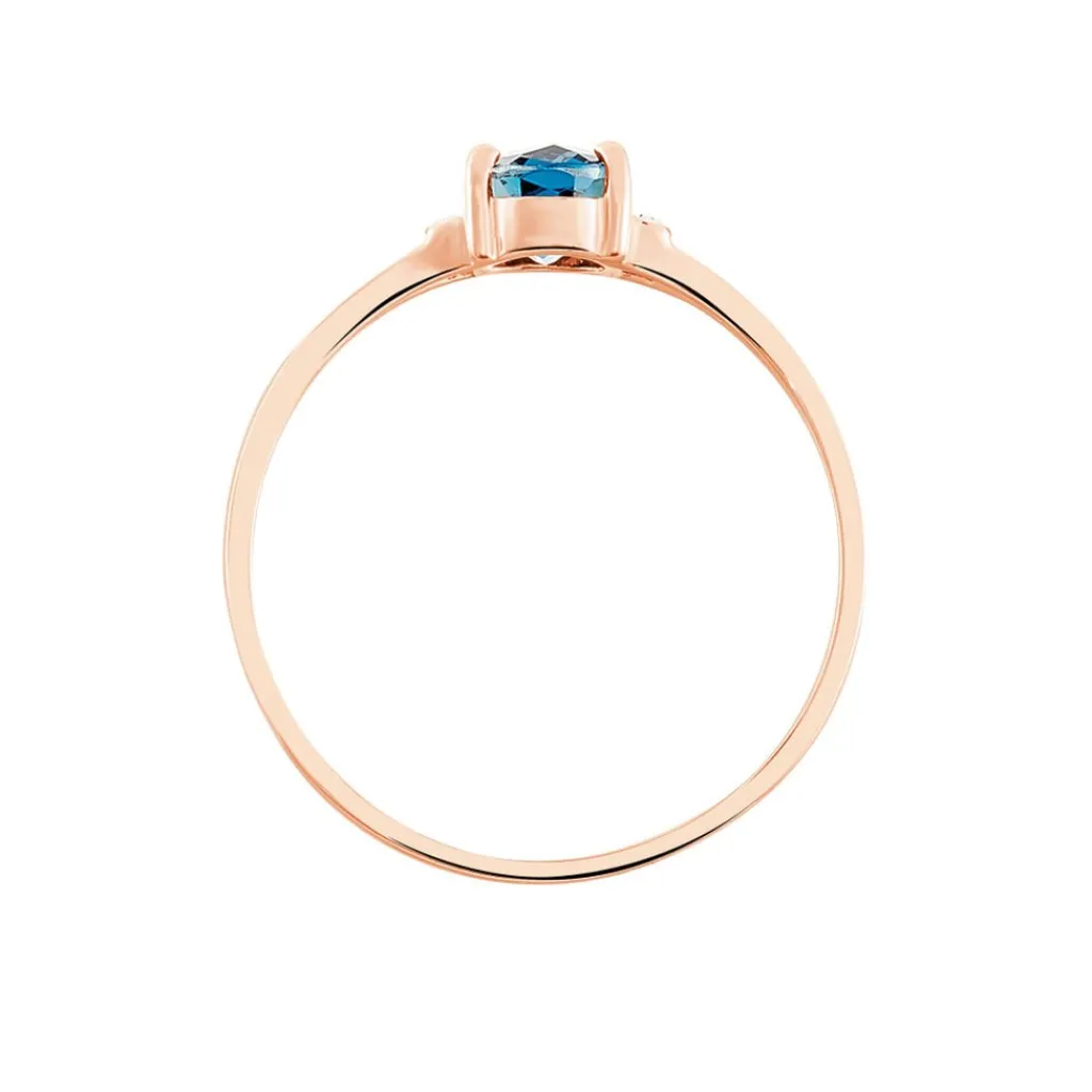 Bague Or Rose 375/1000topaze London Blue Centrale Forme Ovale Taillee Briolette Accompagnee Oxydes De Zirconium