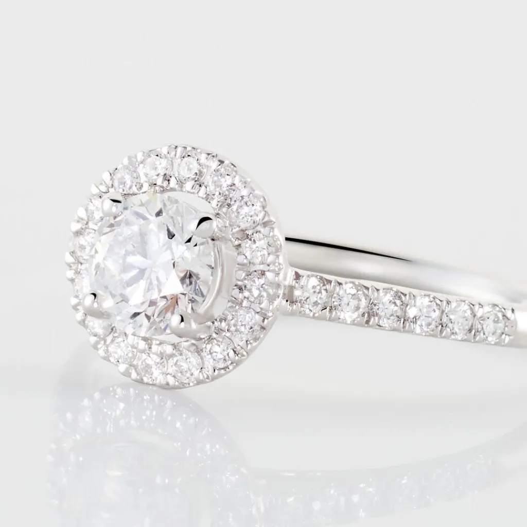 Bague Or Blanc 750/1000 Entourage Forme Ronde Diamants Synthetiques