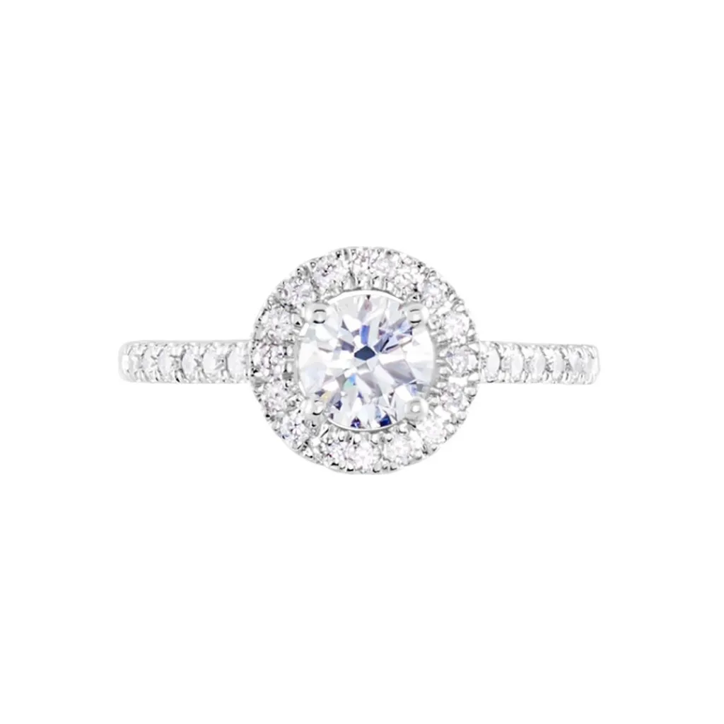 Bague Platine 950/1000 Entourage Forme Ronde Diamants Synthetiques