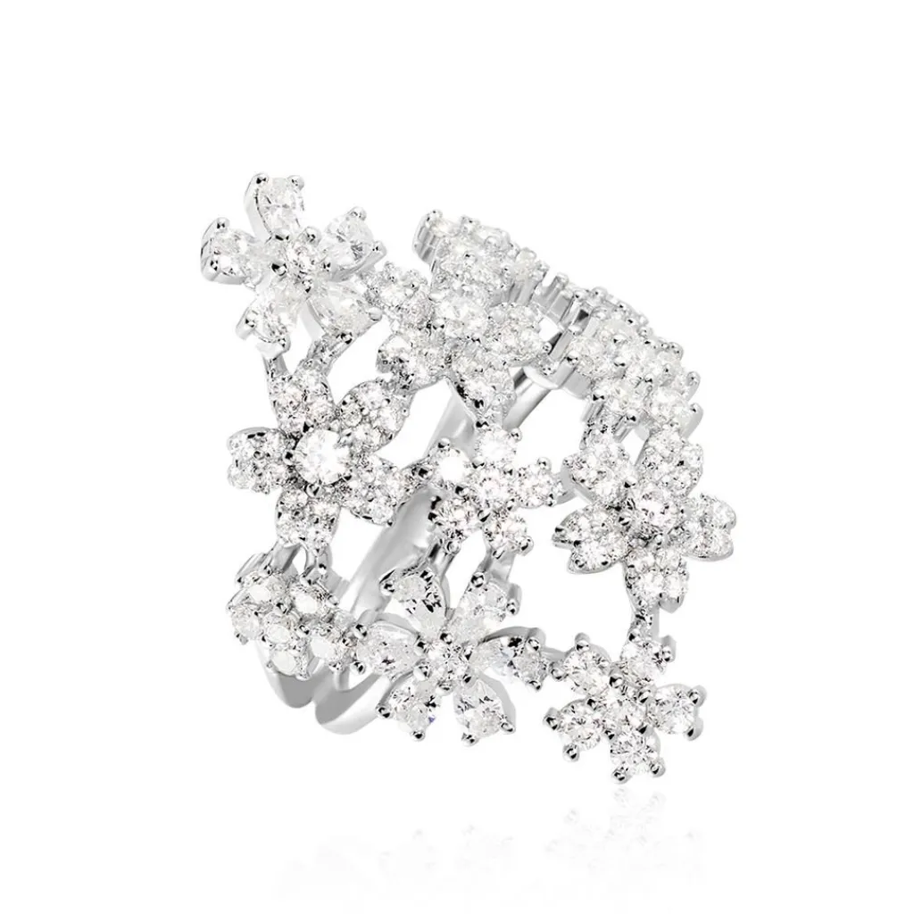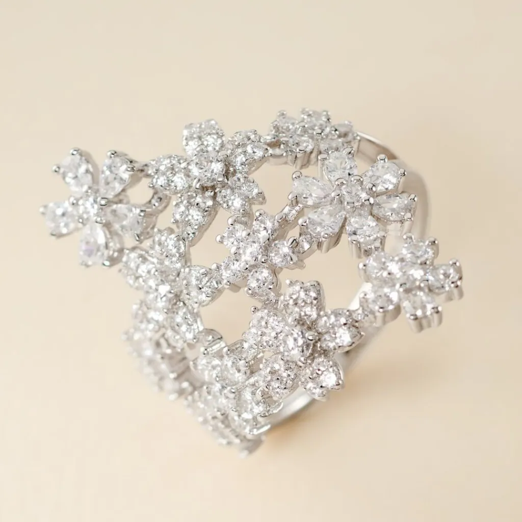 Bague Argent 925/100 Floral Oxydes De Zirconium