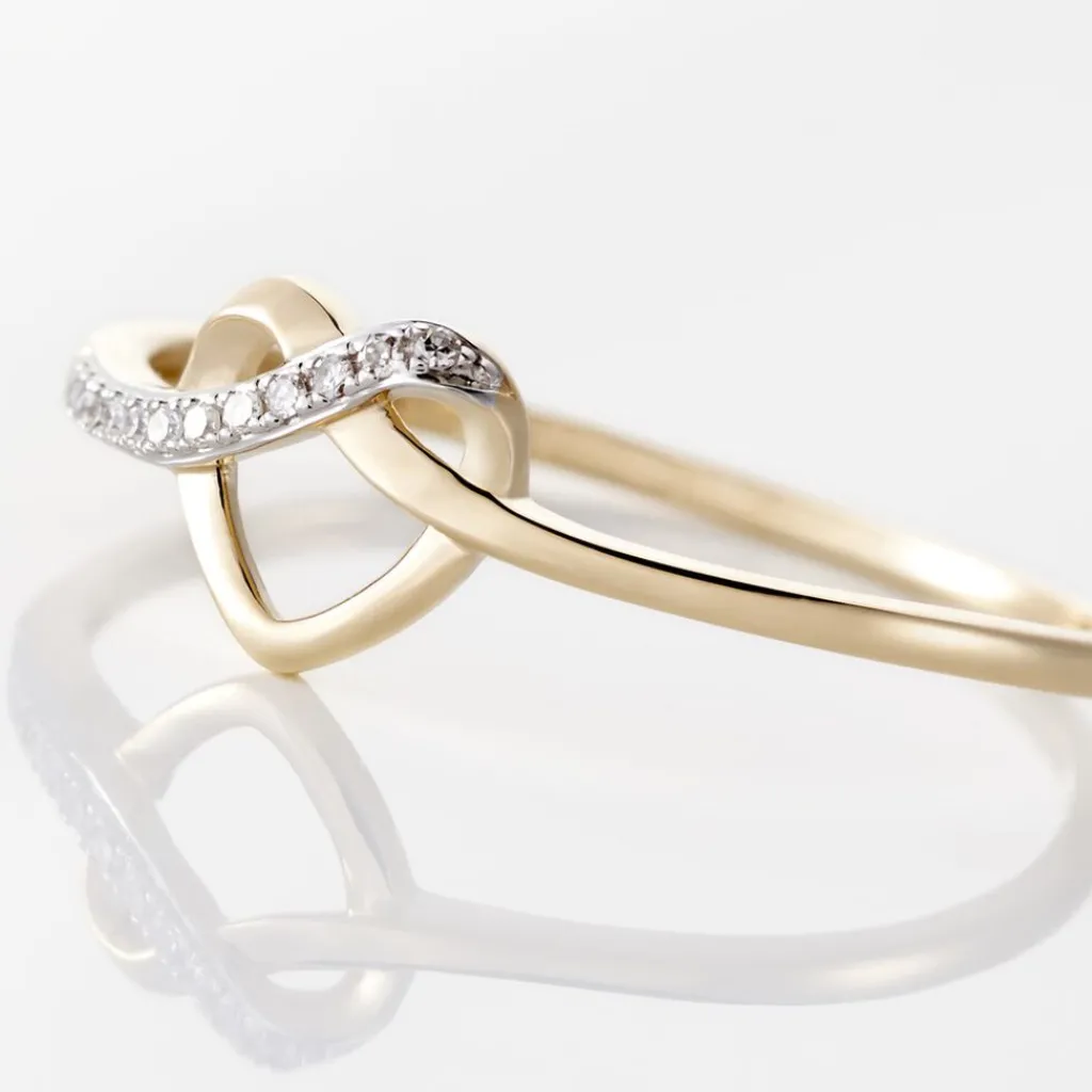 Bague Or Jaune 375/1000 Forme Coeur Pavage Diamants