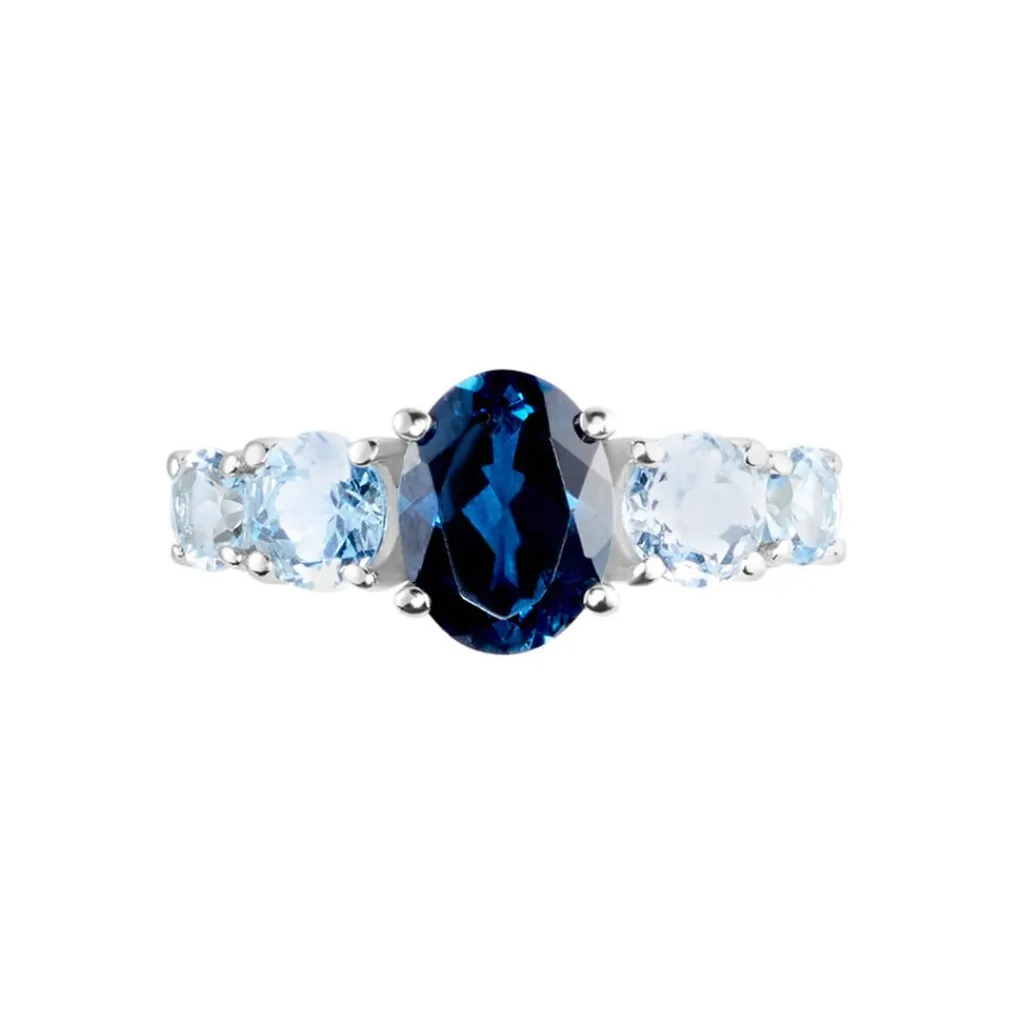 Bague Accompagnée Or Blanc 375/1000 Topaze London Blue 1.45cts Serti Griffes