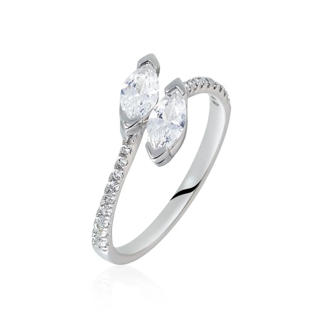 Bague Argent Blanc 925/1000 Toi Et Moi Accompagne Oxydes De Zirconium Sertis Griffes