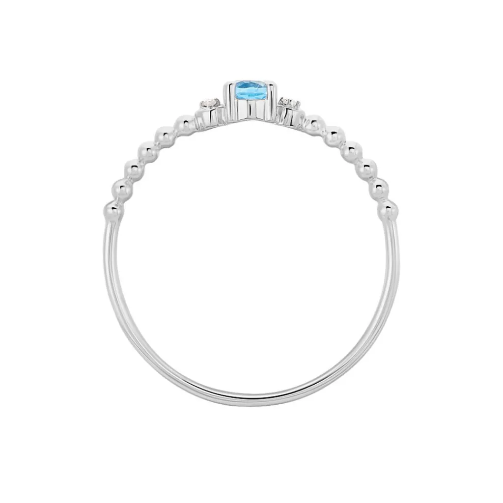 Bague Or Blanc 375/1000 Topaze Bleue Et Oxydes De Zirconium