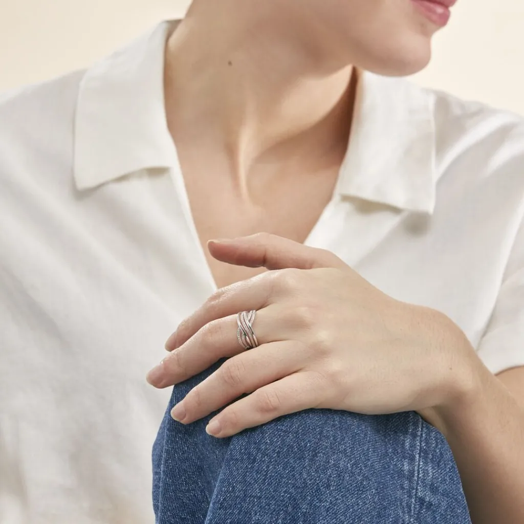 Bague Or Blanc 375/1000 Pavage Diamants Croise Ocean