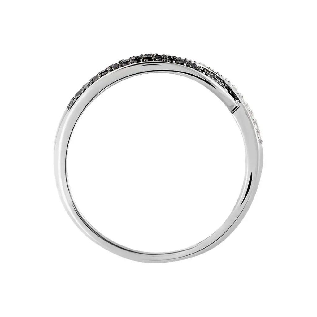 Bague Or Blanc 375/1000 Forme Croisée Diamants Noirs Et Diamants Blancs