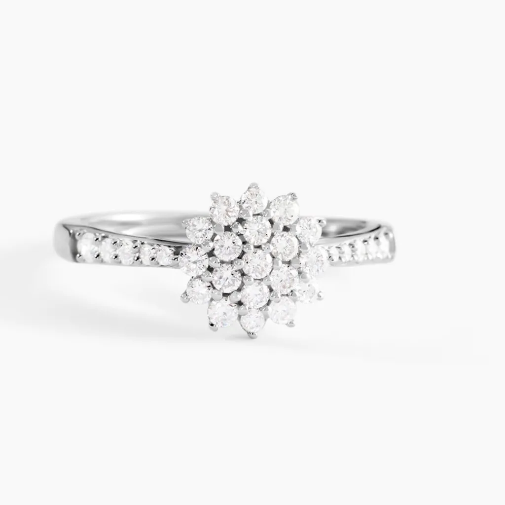Bague Or Blanc 750/1000 Diamants Synthetique Multipierres Forme Chou 0.50ct