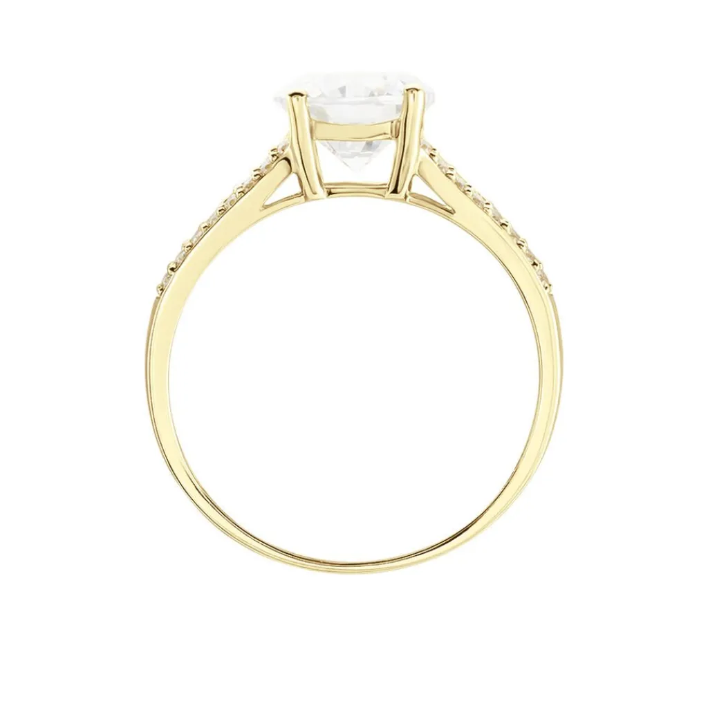 Bague Solitaire Accompagné Or Jaune 375/1000 Oxyde De Zirconium 2.87cts Serti Griffes