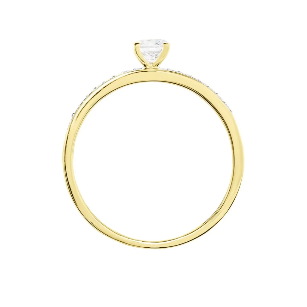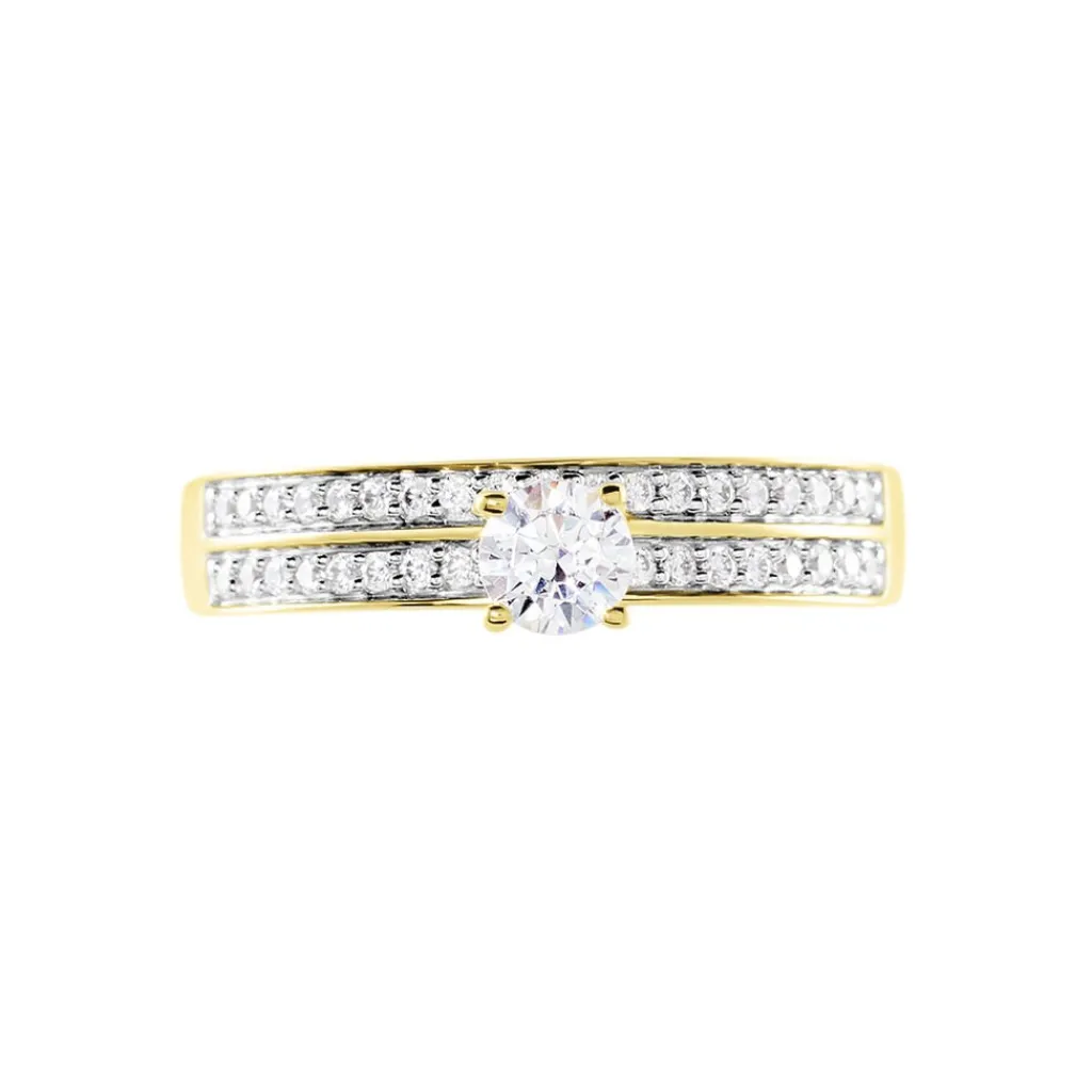 Bague Solitaire Accompagné Or Jaune 375/1000 Oxyde De Zirconium Serti Griffes 0.45cts