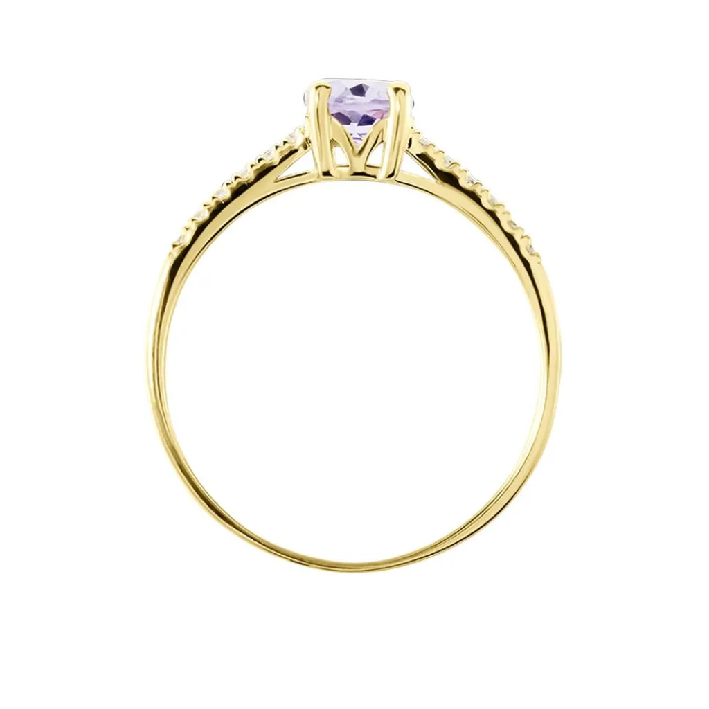 Bague Solitaire Accompagné Or Jaune 375/1000 Améthyste Ronde 0.44cts Serti Griffes