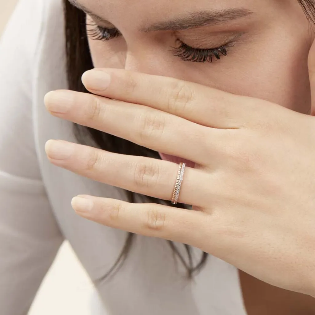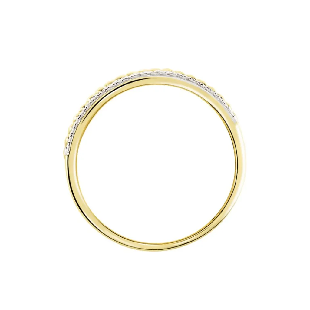 Bague Or Jaune 375/1000 Effet Texture Pavage Diamants