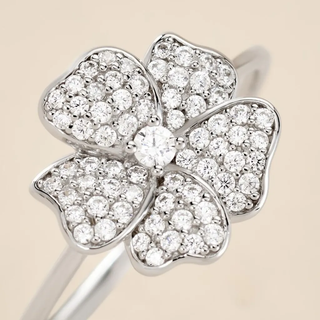 Bague Argent 925/1000 Fleur Pavage Oxydes De Zirconium