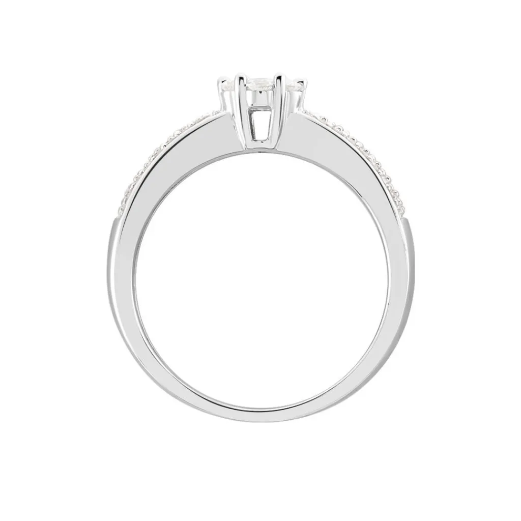 Bague Or Blanc 375/1000 Diamants Multi Pierre Effet Chou Central Corps De Bague Pave Diamants 0.25cts