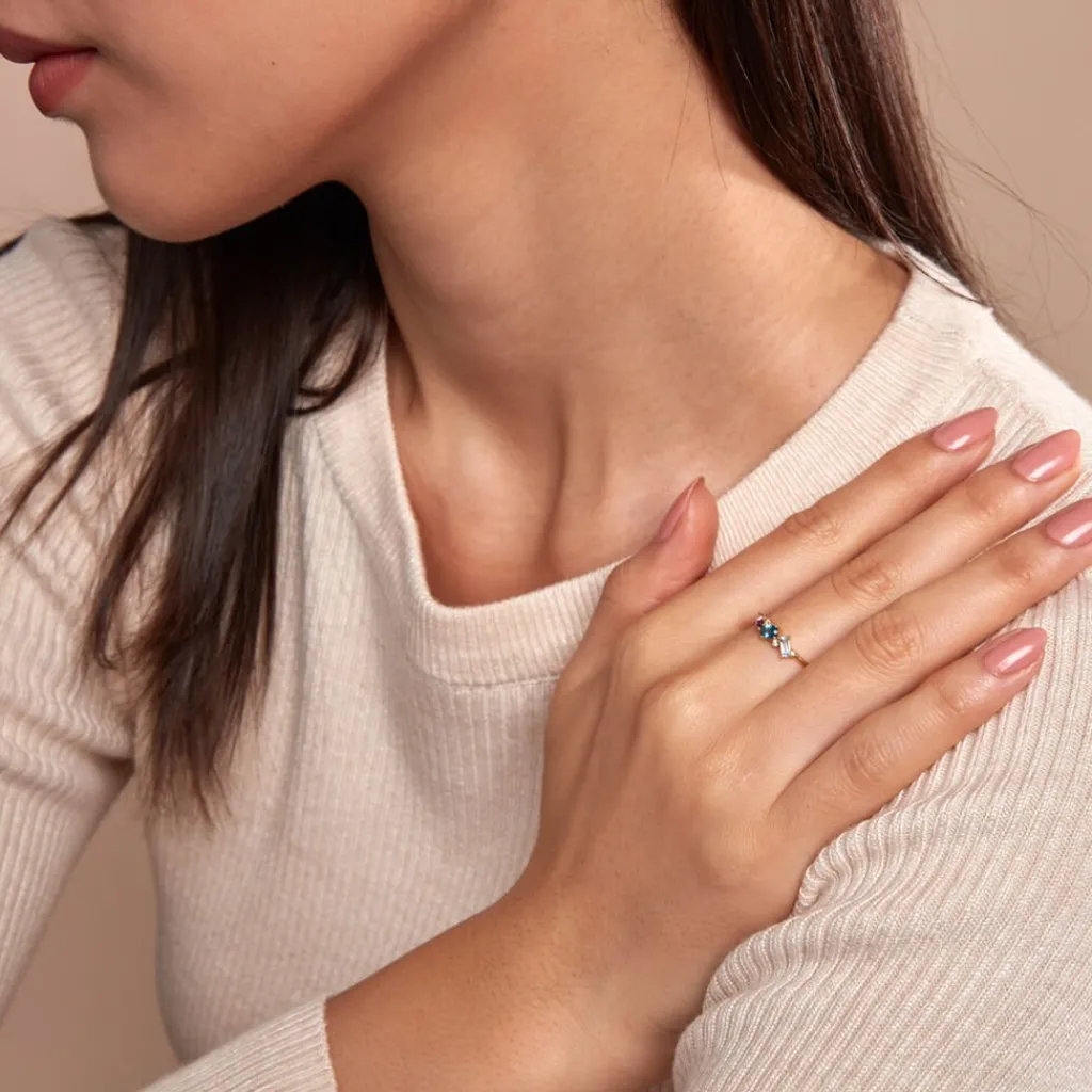 Bague Or Jaune 375/1000 Multipierres Topaze Bleu Sky Ovale Amethyste Navette Et Oxydes De Zirconium Serti Griffes T54