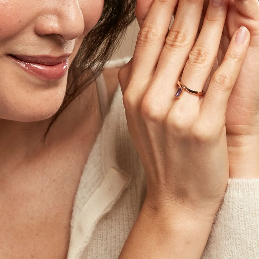 Bague Argent Rose 925/1000 Pampille Oxyde De Zirconium Violet