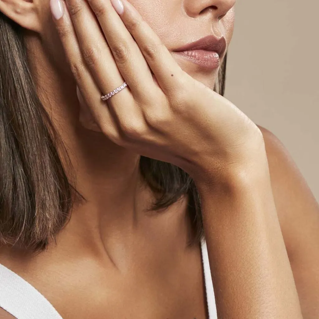 Bague Argent Rose 925/1000 Tour Complet Oxydes De Zirconium Roses