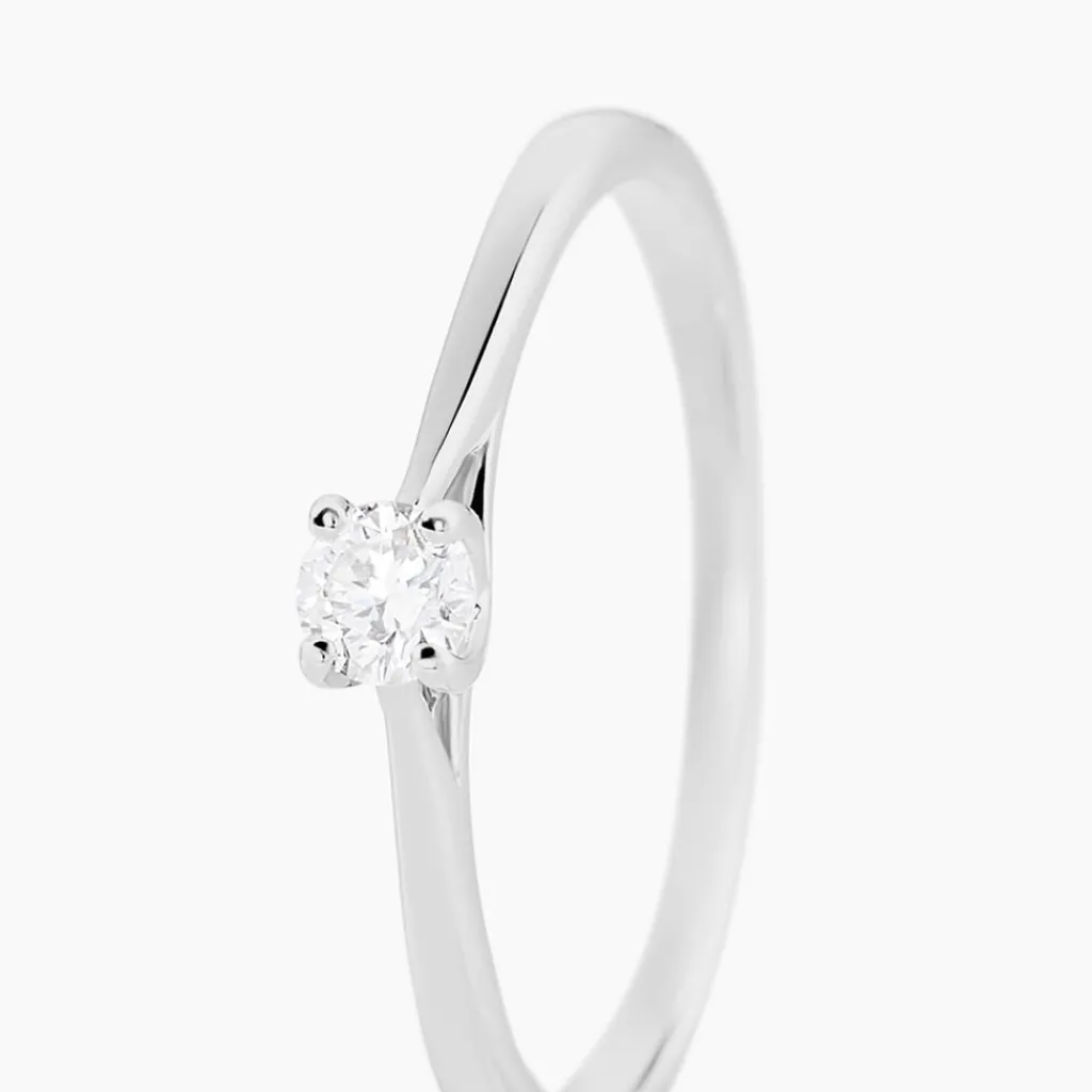 Bague Solitaire Or Blanc 375/1000 Diamant 0.15cts Serti 4 Griffes