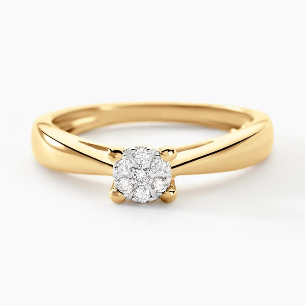 Solitaire Or Jaune 375/1000 Diamants Multi Pierre 0.07 Cts