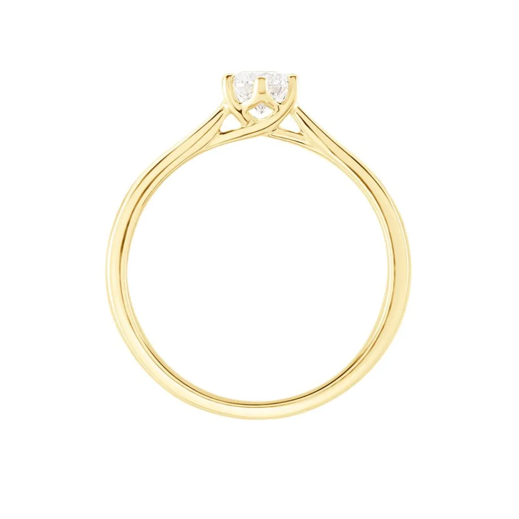 Bague Solitaire Or Jaune 750/1000 Diamant 0.40ct Serti 6 Griffes