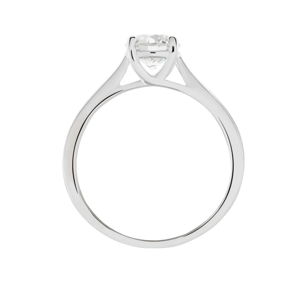 Solitaire Or Blanc 750/1000 Diamant Central Synthetique 1ct Serti 4 Griffes