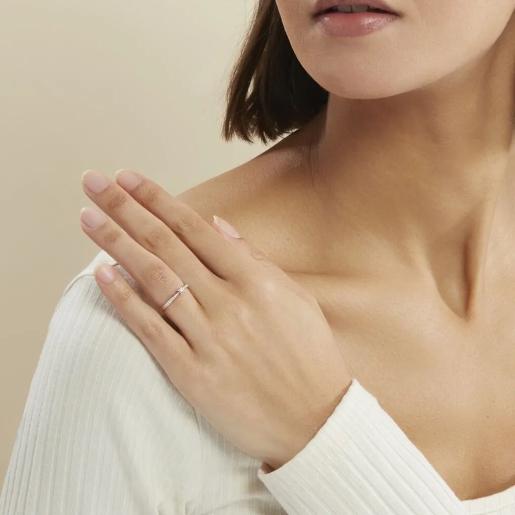 Solitaire Or Rose 375/1000 Diamant Central 0.1cts Serti Griffes Accompagne Diamants