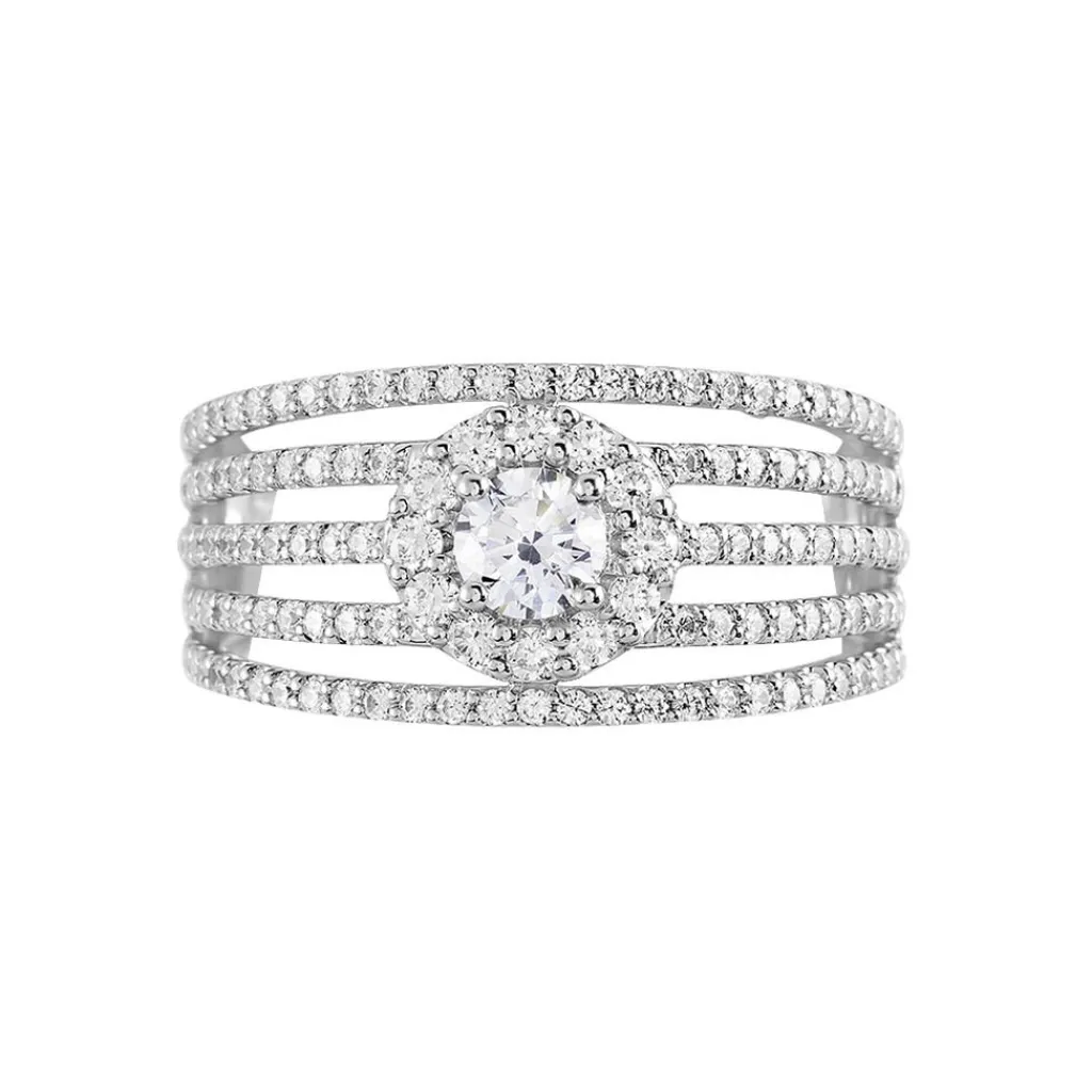 Bague Solitaire Argent 925/1000 Oxyde De Zirconium Accompagne Multirangs Oxydes De Zirconium