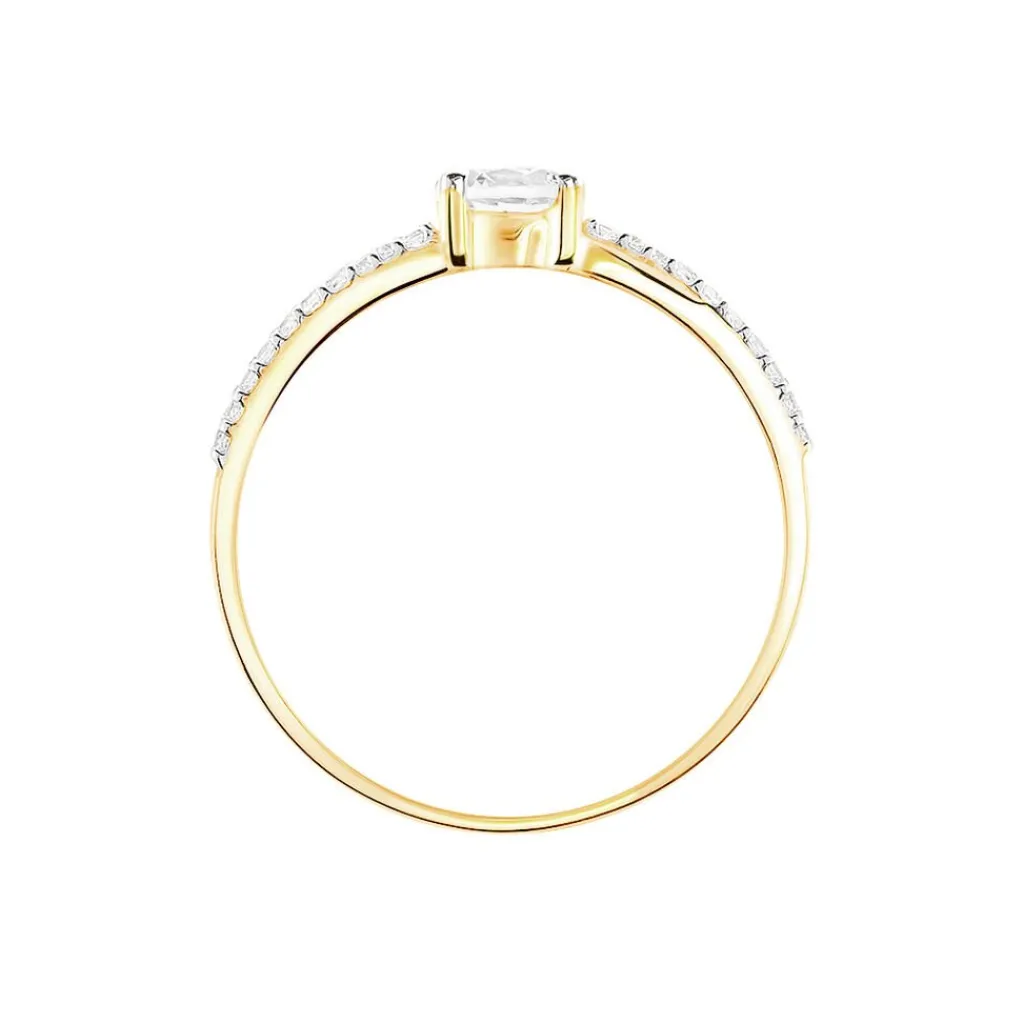 Bague Solitaire Or Jaune 375/1000 Oxydes De Zirconium Central Serti 4 Griffes Avec Oxydes