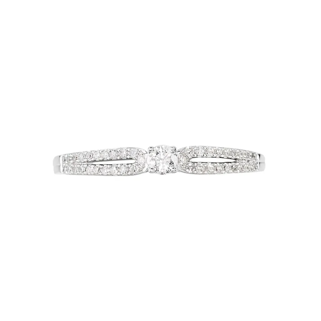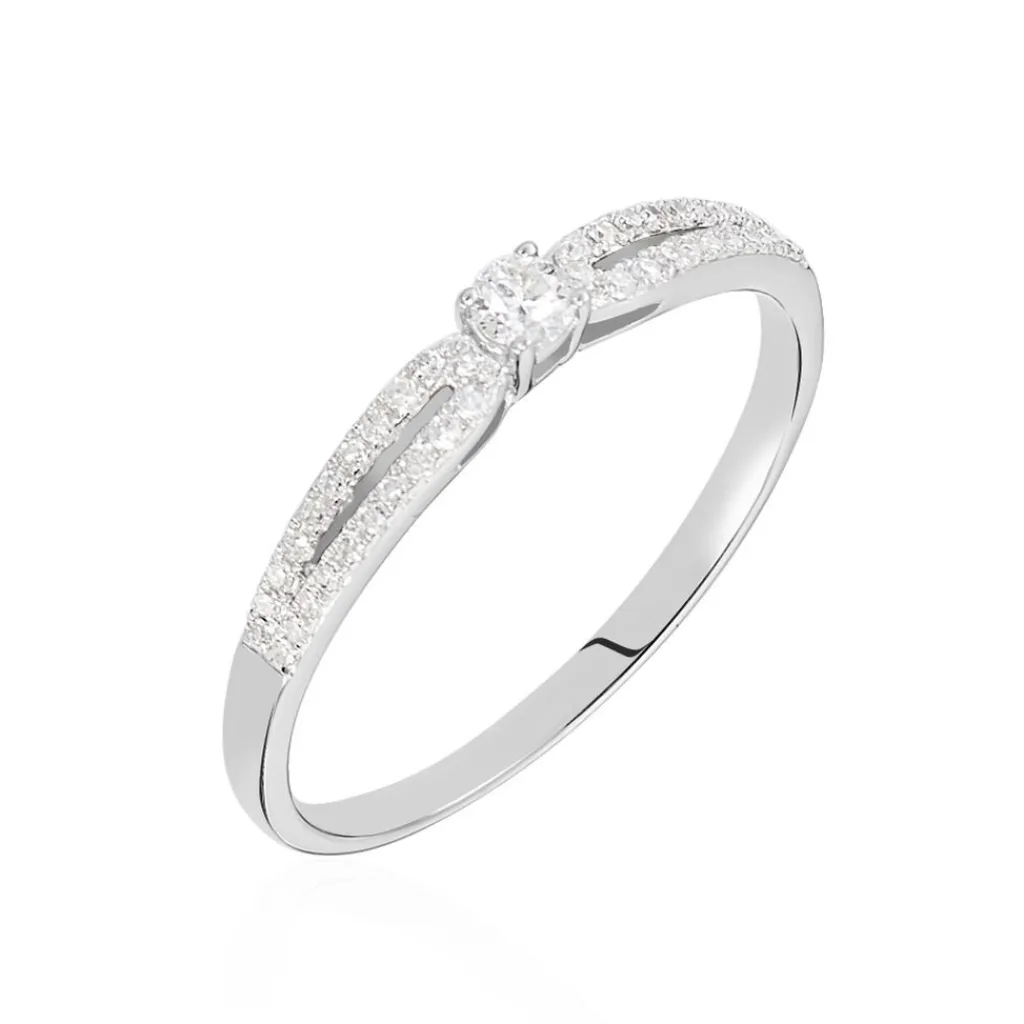 Solitaire Or Blanc 375/1000 Diamant Central 0.10cts Corps De Bague Double Accompagne Diamants